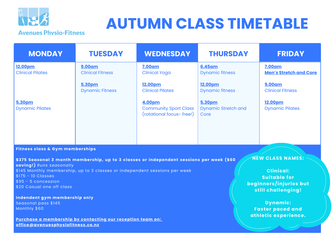 Avenues Physio-Fitness is committed to providing a quality, safe and enjoyable class experience. Our class numbers are limited to 8 people. Please ensure that you book ahead as these classes are popular and fill up fast.